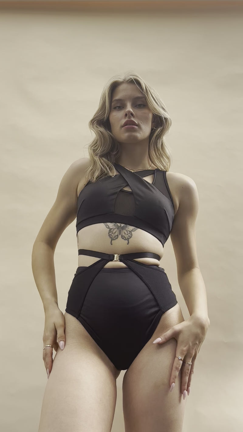 - Pairs perfectly with the Loretta Mesh Cut Out High Waist Shorts