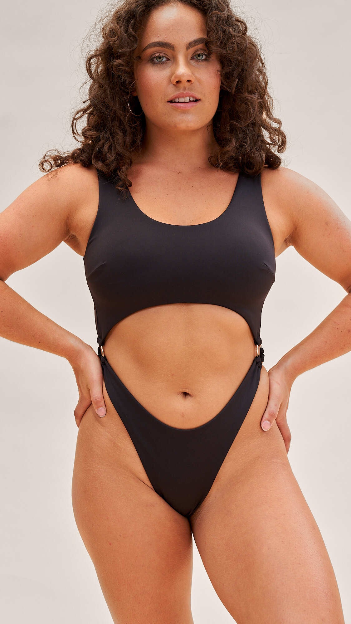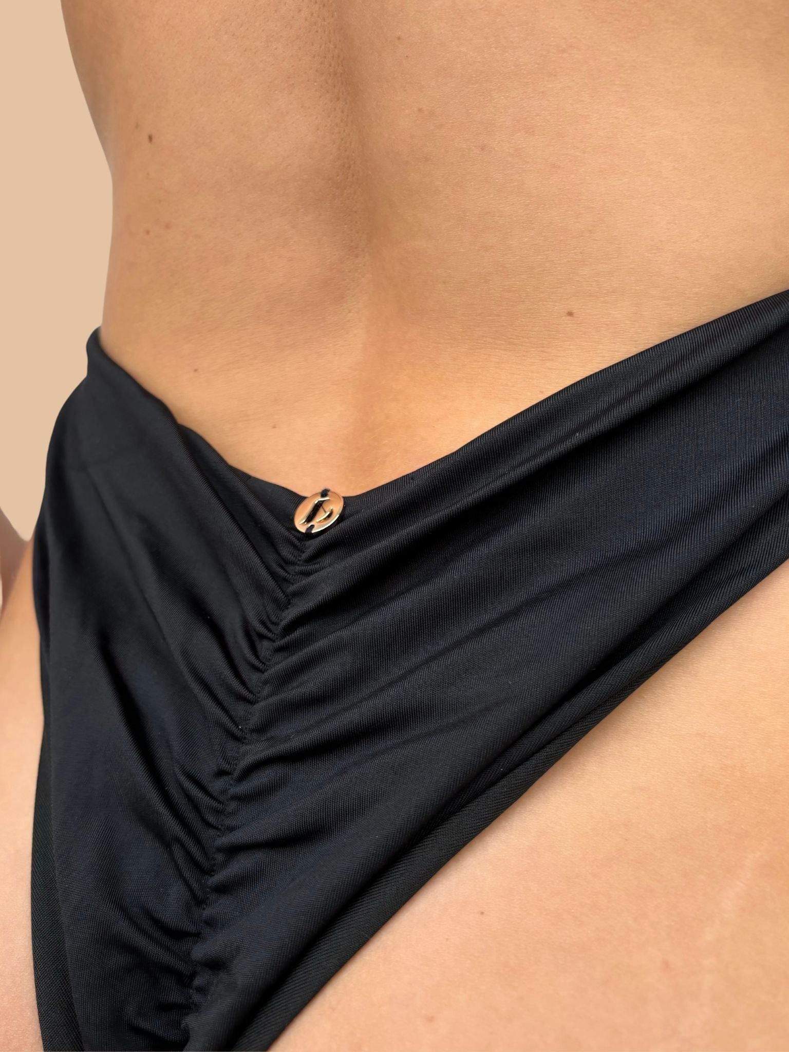 Kenzie Bodysuit - Scoop Neck High Cut Scrunch Bodysuit Black