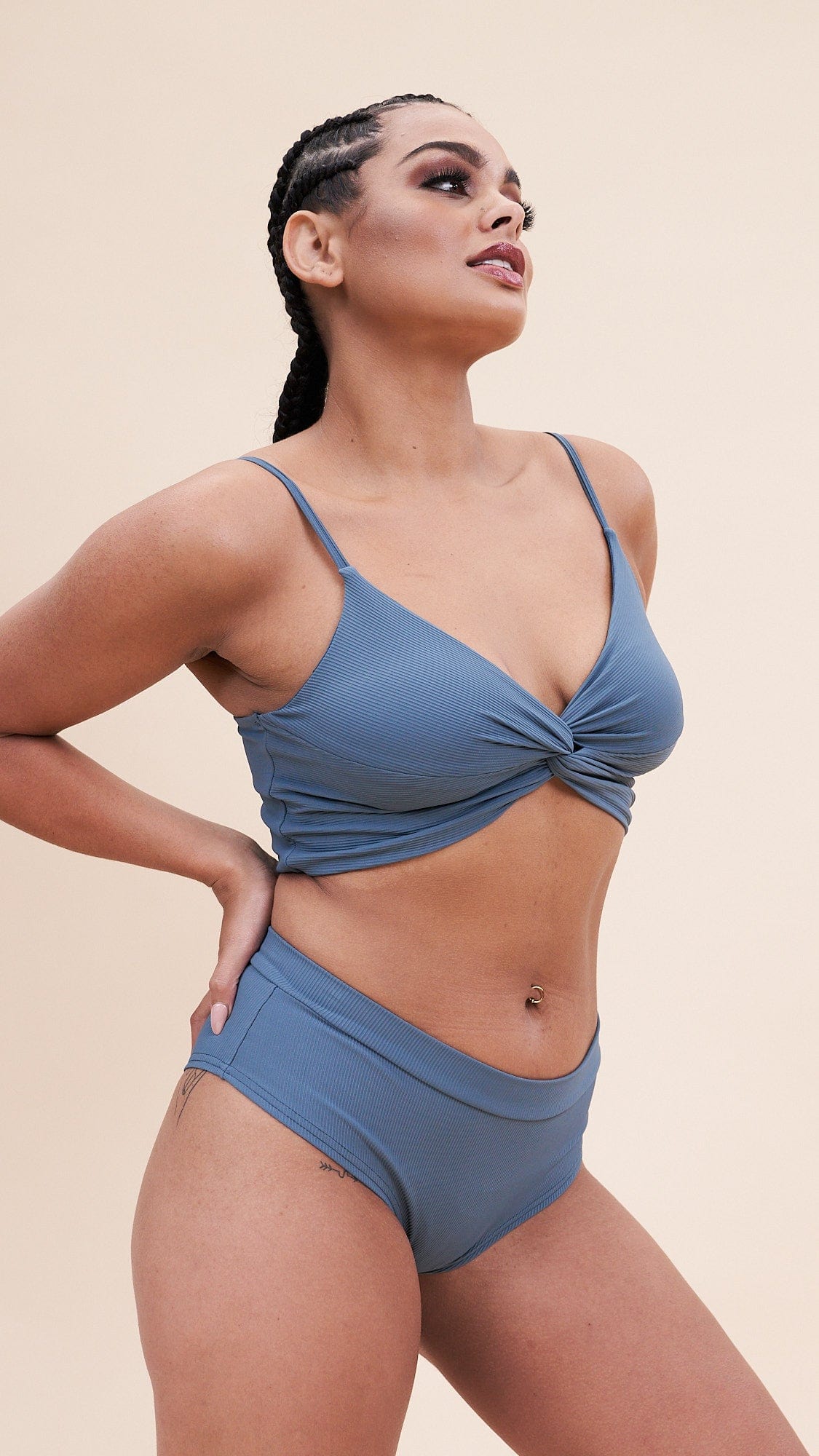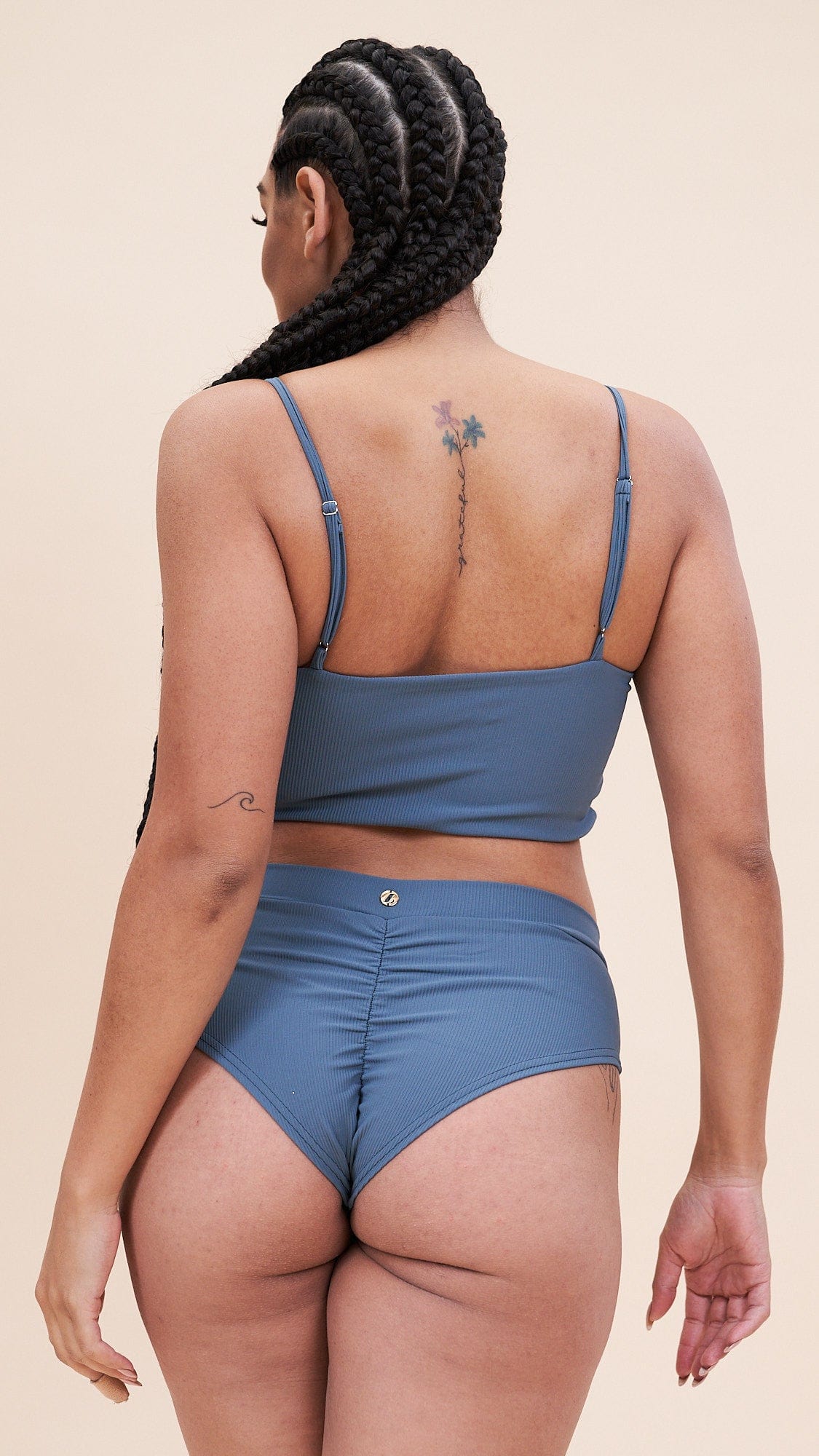 Basic Low Waist Shorts - Scrunch Shorts Ribbed Steel Blue