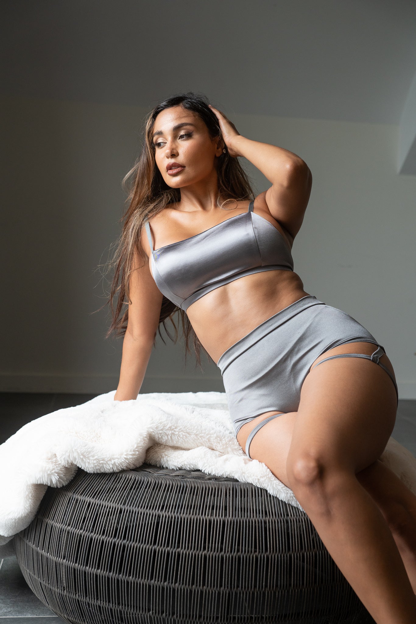 Our Maya Top is the perfect sexy sports bra for pole! You'll love this metallic fabric and how comfortable it is