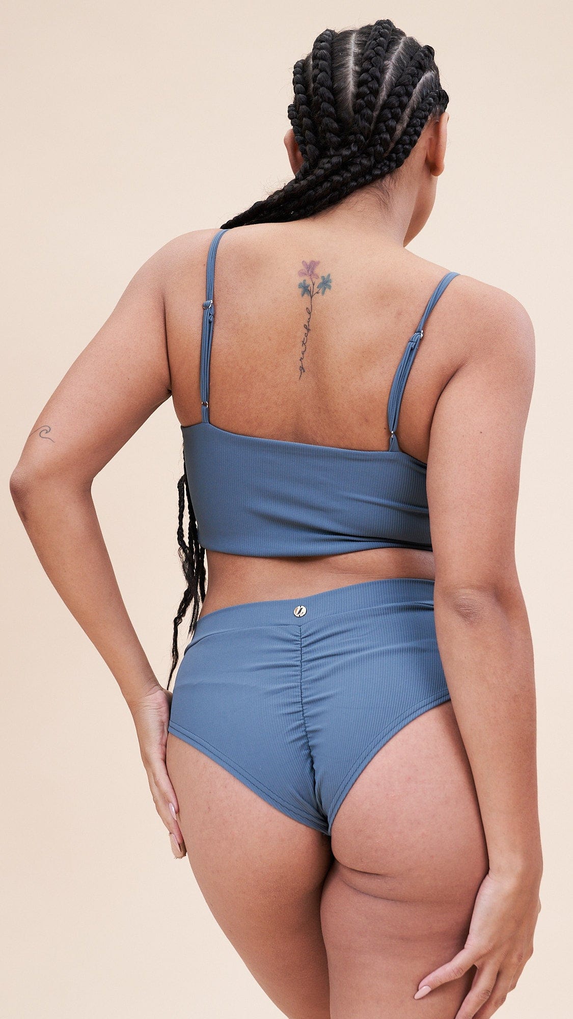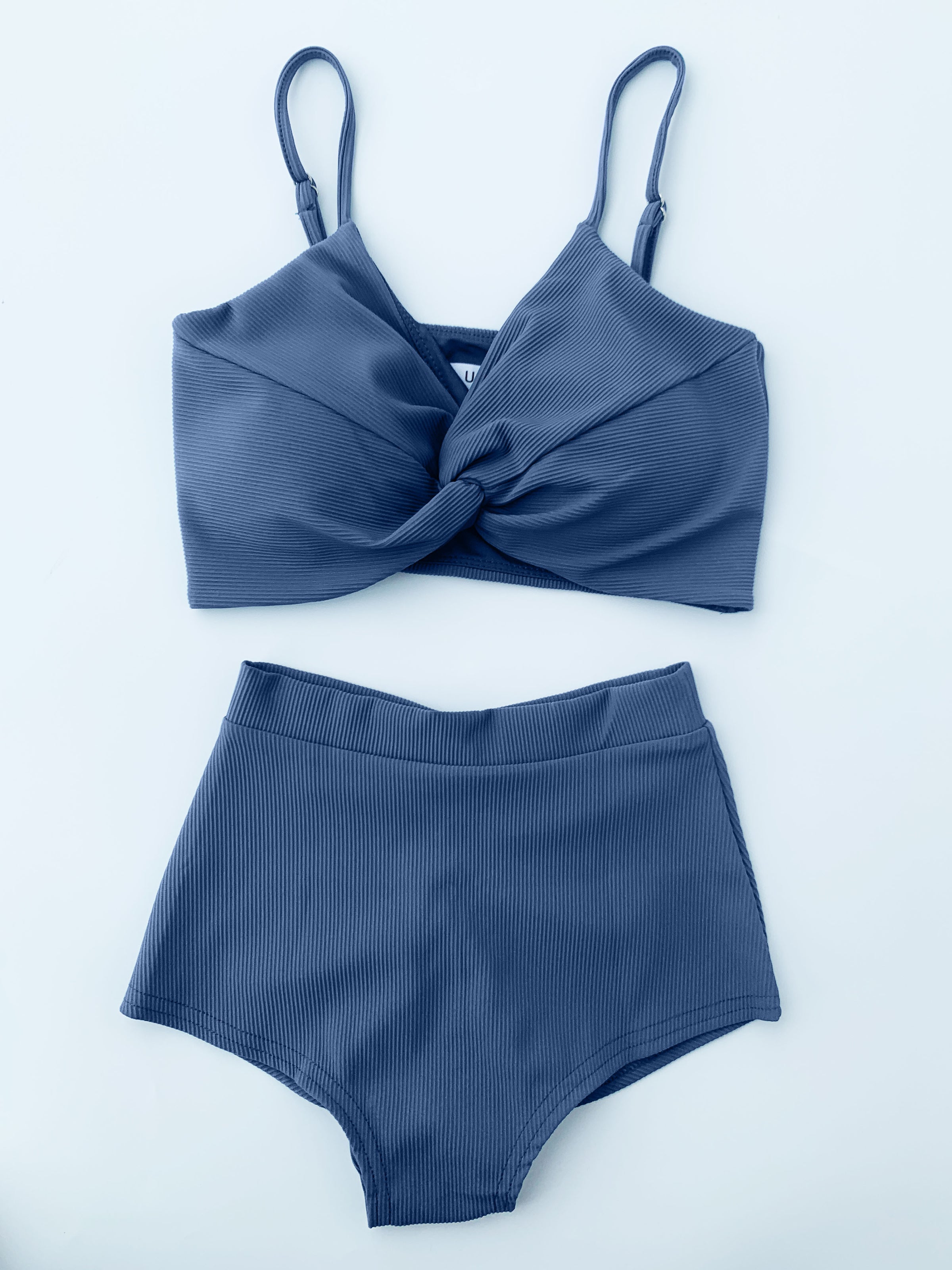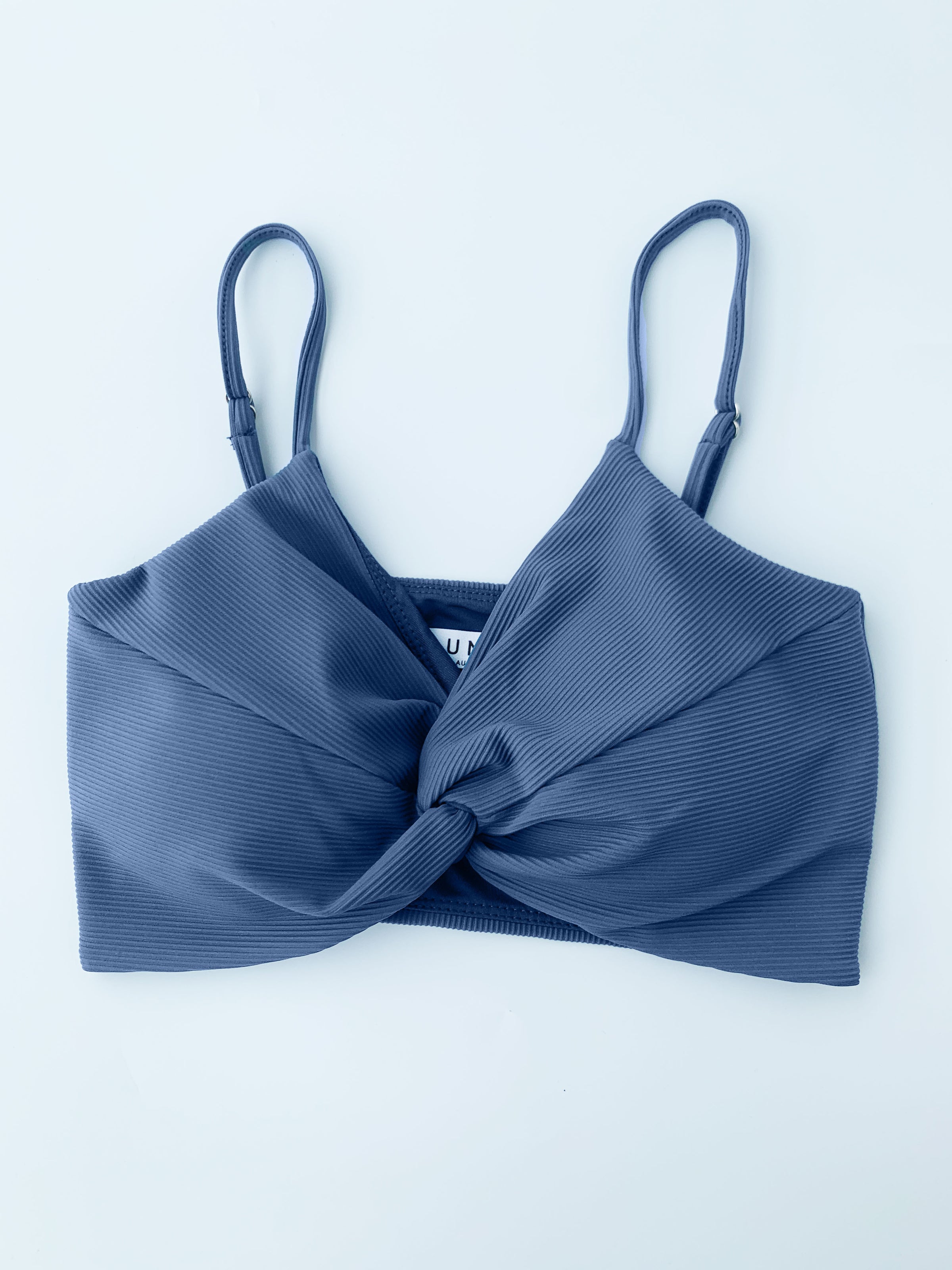 Harleen Top - V Neck Twist Top Ribbed Steel Blue