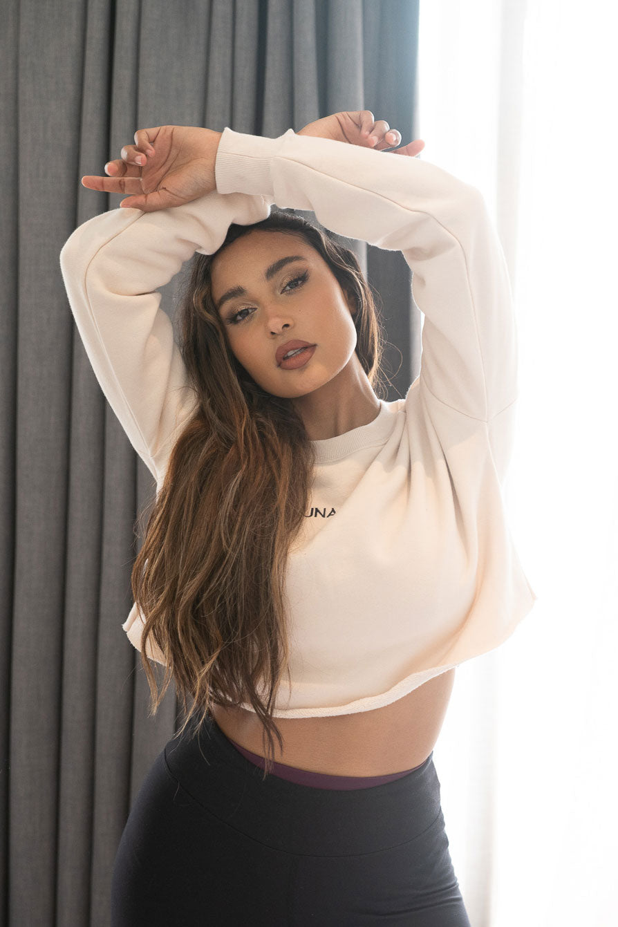 Layer it up this winter with the comfiest crop sweat you'll ever own! š Our highly anticipated athleisure-inspired piece features a flattering scoop-neck and raw-cut hem for the ultimate pre/post-workout look. Pairs perfectly with our Basic Hoodie and Basic Sweat Pants, you'll never want to take it off!Ā